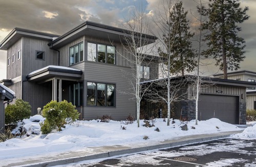 Retreat in this modern 5 bed/5 bath home at Tetherow. This stylish home has a modern feel, abundant natural light, a two car garage with ski racks and space for bike gear, an intimate rear courtyard with expansive southern Paulina views, hot tub, fire pit and more!
