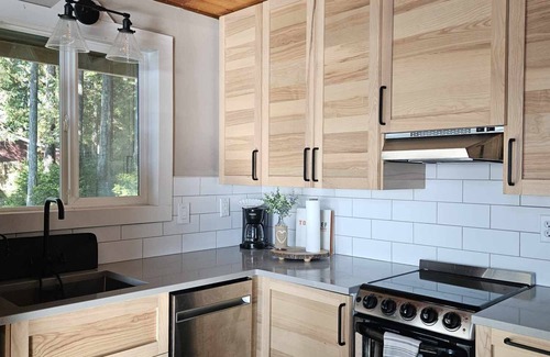 Sunset Cabin is a lakefront one bedroom chalet with an open loft and rustic-meets-modern finishes. It has one bedroom, 3 queen beds, remodeled kitchen, bathroom with shower and a gas fireplace. The pebble beach is just off the deck where you can enjoy the view, take the canoe out for a paddle around the lake and take in the gorgeous sunsets! Please note that guests are required to complete the rental agreement attached, along with the 2 ID items listed on page 3 of the agreement within 24 hours of booking.
