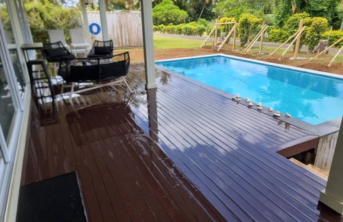 One of 2 brand new deluxe villas available for rent, separately or together for a large family gathering. Each villa is equipped with a full kitchen, air conditioning, 2 bathrooms and open plan living. With 3 generous sized bedrooms, ceiling fan in each room and washer, dryer to provide comfort and convenience, you will feel right at home. Robust UV filter to ensure there's clean and safe drinking water straight from the tap. Have a swim to cool down in the pool, or show off your grilling skills on the BBQ, you will find everything you need to enjoy a well deserved holiday.