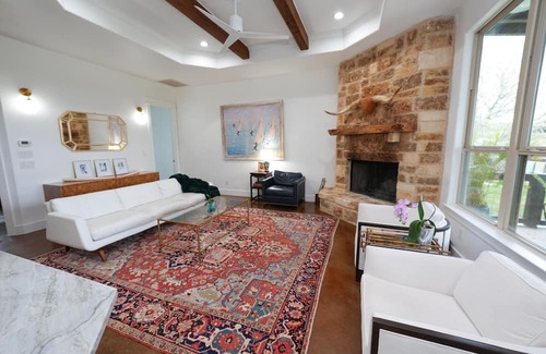 We are opening our private home on 5.5 A that has dark night stary sky’s and backs to the Guadalupe river and a 4,000 acre private ranch. Infinity view heated pool, xl hot tub, outdoor kitchen and dinning, basketball hoop, Badminton/volleyball, ping pong, and 2000 SF roller skating barn to keep you busy! Guadalupe river park 5 minutes away. Located in Sisterdale Texas, 15 minutes to Boerne, or Comfort and 35 minutes to Fredericksburg. Sleep 10, with 4 bedroom 3.5 bath, 4 queen size beds, and one king. The 4th queen is in tv room with no door and available upon request. Brand new bedding and bath towels, and home has been professionally cleaned! This is our private home we are only renting out for the once in a lifetime eclipse experience. So it is fully stocked! Fabulous BBQ restaurant 7 minutes away! HEB food delivery available.