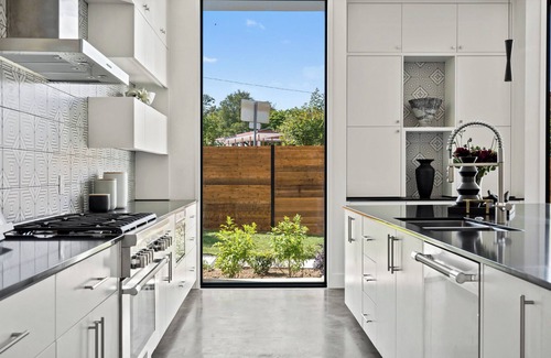The fabulous home sits on a quarter-acre lot just minutes away from Zilker Park, Barton Springs, Rainey Street, Moody Center, Austin City Limits, The University of Texas, Q2 Stadium and downtown Austin. Professionally designed and appointed with beautiful furnishings, this magnificent space offers four bedrooms -- three bedrooms in the main house plus a one bedroom/one bath attached casita. The home is perfect for multiple family use and sleeps 8 people.