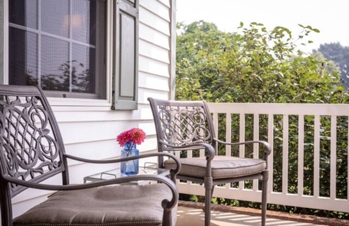 Clover Cottage is a 500 square-foot suite that boasts a 16-foot ceiling and a dual-sided, seasonal gas-log fireplace. When in operation, tub jets continuously warm your water as you relax.
