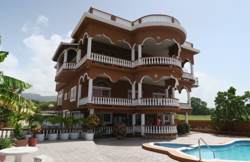 Casa De' Mediterranean is a unique property built with exceptional details of a luxurious villa. It is located on the main highway from Sangster's International Airport. The property has spacious rooms specially decorated with sense of comfort and style which features a modern bathroom. Bedrooms also has individually controllable air conditioning units, satellite TV and radio. The property is equipped with coffee machine, ironing and laundry facilities, variety of cooking utensils, dinning, living rooms, home theatre room, entertainment area, lots of parking, barber/hairdressing shop, fully equipped outdoor kitchen and facilities. Outdoor bathroom, kiddies pool combination with adult pool. Total of eight bedrooms with king-size, queen size and double beds. Rooms also have a balcony with sea view and mountain view. There is a hot tub with magnificent views of the ocean and mountainside. Private area for nude sun tanning and private parties. Excellent views of neighboring resorts and world re-known Reggae Show, Rebel Salute hosted yearly five (5) minutes walking distance from property. Located in a gated community with privacy and well secured walking and biking trail.