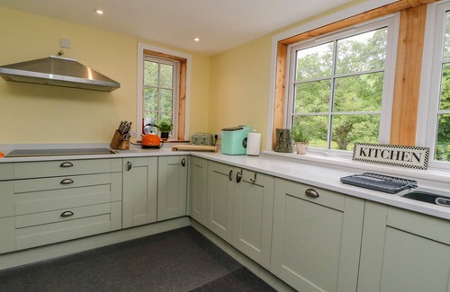 Amenities: Biomass heating with open fire, 2 x woodburning stove and an electric fire. 4 x electric ovens, 1 x steam oven, large induction hob, microwave, fridge/freezer, American style fridge, 2 x dishwasher, washing machine and tumble drier. 14 x TVs, 1 x Smart TV, DVD player and selection of DVDs, free WiFi, pool table, table tennis, dart board, Pac-Man Machine and selection of books and games. Fuel, power, starter for woodburning stoves inc. in rent. Bed linen and towels inc. in rent. Ample off-road parking available. Garden with children's play area, lawn, decking, patio with a build-in barbecue, furniture and hot tub. Six well-behaved dogs welcome. Sorry, no smoking. Shop 0.8 miles, pub 0.7 miles. Note: Steps throughout the property, please take care. Note: Property located near a river and a road, children must be supervised at all times. Note: Please note property does not accept hen, stag or similar parties