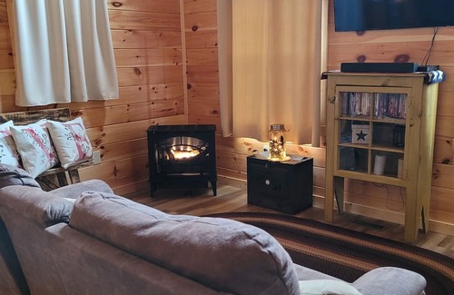 With easy access to the new route 33, our cabin is a couples getaway. We offer a covered hot tub so you can relax in it rain or shine.