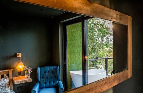 The Red House, a single-storey lodge, consists of a kitchen with electric oven and hob, fridge/freezer, washing machine, dishwasher, kettle, and toaster, a dining area with TV, speakers, and seating for four guests, and a sitting area with fold out duton and woodburning stove. The bedrooms consist of a king-size with en-suite shower room and double. Fuel, power, bed linen, and towels are included in the rent. Outside, there is a garden with lawn, decking, hammock, fire pit, pond, furniture, barbecue, and outdoor freestanding bath, freshwater plunge pool, river access and off-road parking for four cars. Two well-behaved dogs welcome. Sorry, no smoking. Within 0.6 miles you will find a shop, 0.1 miles a pub and 0.1 miles a river. A stay at The Red House promises to be one to remember. Note: Steps up to the property. Note: Access to shower room is through master bedroom. Note: The water is bore water filtered through a UV system; it is drinkable, but guests are advised to buy bottled water if preferred. Note: On rare occasions, the site may flood, if this happens, a six-wheel vehicle is available to ferry guests, or paddle boards can be used for access. Note: No children under the age of seven allowed. Note: This property has two ponds and the property is also close to the banks of the River Dee, children and pets to be minded at all times. Note: This property has a Good Housekeeping bond of GBP 250. Note: Paddle Boards are provided - used at own risk