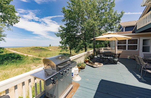 On the beach of Lake Michigan, this 2 bedroom "Cottage", with full bathroom, is the escape you're looking for. The sounds of the shore and view of the lake are just what you need.