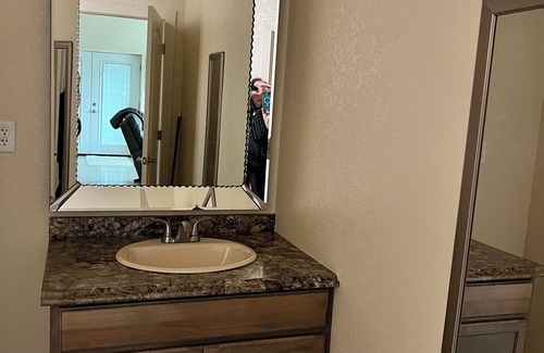 Sitting on property with hundreds of cottonwoods and natural wetlands, this desert retreat was built this year for one or two occupants. Close to Black River Village and south of Carlsbad, this rental is a perfect spot for a traveling nurse, 1 or 2 explorers, an oil-field manager or anyone who thrives in open spaces but enjoys high-end lodgings. This apartment attached to a large shop features 1 bedroom with a super-comfortable queen bed and large closet; an 8'x8' bathroom with a 4x4 shower; a large couch and a lazy boy in the living room with a big screen TV, and WiFi (multiple channels included) Cook a steak or sit and enjoy a sunset on the 20'x 20' covered patio (Pit Boss BBQ, table and chairs provided) OR cook indoors using an air fryer, crock pot and/or electric skillet. The kitchen includes a full size refrigerator with ice-maker and a dishwasher. Need parking for a large trailer? No problem. There is space behind the unit to park it for no additional fee. Your car or truck is protected under a covered car port. This unit offers all the comforts of home while visitors enjoy uninterrupted views of Guadalupe Peak, fishing in a private pond or hunting arrow heads on over 100 acres of riparian wet lands. Want to know where to go hiking or to explore other outdoor areas? We are happy to assist. We will also give you total privacy if that is what you desire.