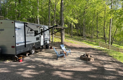 Camper sleeps up to 6 people on your own 1 Acre Wooded Lake Lot.