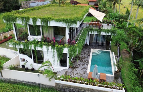 Escape to our modern villa, surrounded by lush green rice fields with breathtaking views. Enjoy a stunning sunrise at the front and a magical sunset at the back. This spacious retreat blends luxury and nature, featuring large windows and a private pool. Perfect for families, couples, or groups, with butler service and optional extras like breakfast and massages. Relax, unwind, and experience Bali’s serene beauty.