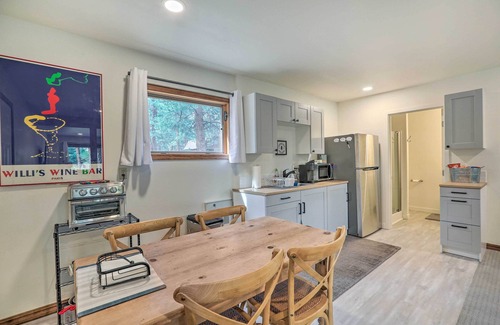 Relaxation and adventure await at this barn-style retreat in Bend, Oregon! Just 6 miles from the historic Old Mill District, you can enjoy proximity to top hiking trails, scenic natural spaces, and exciting winter activities at this 2-bedroom, 1-bathroom vacation rental. This charming abode features all the essentials for a no-stress stay, including WiFi and a well-equipped kitchenette for easy at-home dining. Wake up with coffee on the deck and have a cozy game night after a day of exploring.