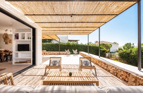 This beautiful and elegant villa will really impress you, all materials have been carefully selected and combined to obtain a unique result: high quality natural materials, the combination of stone and wood, mix of rustic and ethno, large surfaces in light tones, designer lamps, paintings and ceramics that give that special touch of colour. All of this clearly exceeds what is commonly expected of a holiday home.On the ground floor, the living room, kitchen and dining room form a unique, bright space that is furnished with the above-mentioned combination of noble materials. There is direct access to the large outdoor terrace, garden and swimming pool. The entire outdoor area has been redesigned to offer comfort and an atmosphere of luxury and relaxation.The bedrooms have an exquisite style with great attention to detail, for example the different and original bedside tables, or the built-in wardrobes with a very special design. There are 3 bathrooms + one toilet. On the first floor are the two sea view bedrooms type Suite, which open onto a terrace of exceptional dimensions. This offers a great view over the entire outdoor area, the pool and the sea and you can go down from it directly into the garden.The outdoor area is also characterized by large dimensions and a selection of modern and exquisite materials. A floor as white as that of the inside contrasts with the green of the grass and the turquoise colour of the modern swimming pool. A well-kept garden and extraordinarily large covered terraces. As well here the furniture is made of massive natural materials, really impressive.Villa Baixa is a true jewel, made to give superior satisfaction to its guests, an unusual grade of quality and a unique atmosphere for holiday rentals.It is located at the small cove and beach of Canutells, a traditional place where Menorcans used to spend their summer, where this special structure and flair of the authentic Menorcan coast has been formed, where children run free, neighbours have known each other for a lifetime, the few bars and restaurants have this special and authentic air. The beach is about 6 minute walk from the house.About 5 minute drive away is the small town of Sant Climent and the capital of Menorca, Maó, less than 10 kilometers, making it easy and convenient to enjoy its wide gastronomic, commercial and above all cultural offer. The port with its great variety of bars, restaurants, exclusive shops and nautical life, the centre with its art galleries, markets, theatre etc. You will surely visit Maó more than once.