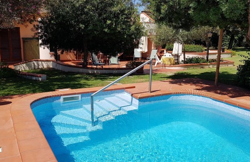 The residence is independent quiet, cool and set in a large garden with trees, about 2 000 square meters with a large lawn, private parking, located on the road leading to the archaeological site and the beautiful beach of Nora.