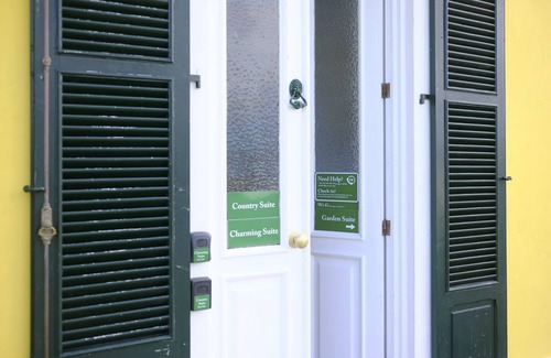This is a self catering double suite with its own private bathroom with bathtub, smart Tv, mini refrigerator, coffee machine and kettle. The suite is located on the first floor of the Villa´s Grand House, and its windows open to the mountain and garden.