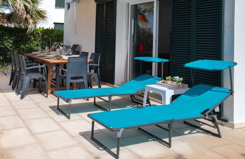 In a quiet, private location in the northern part of Menorca you will find Villa Rica for a unique holiday for 6 people. On 120 m² living space on 2 floors it consists of 4 bedrooms, 2 bathrooms, a comfortable living-dining area and a separate kitchen, with furnishings that leave nothing to be desired. The modern villa is also equipped with Wi-Fi, air conditioning, a satellite TV with DVD player, a radio with CD player, a baby crib, a children's bed and a highchair. Absolute relaxation is provided above all in the spacious outdoor area: On the top floor you have a balcony with chairs and a unique panoramic view of the surroundings and the sea. The furnished terrace with barbecue area offers relaxing moments and the pool with integrated children's pool provides refreshment on hot days - all you need for a nice holiday. Some restaurants, bars, shopping facilities and a children's playground are only a 5-10 minute walk or a short drive away. For a wider choice of restaurants and a beautiful sandy beach, it takes 6 minutes to reach the bay of Arenal d'en Castell.