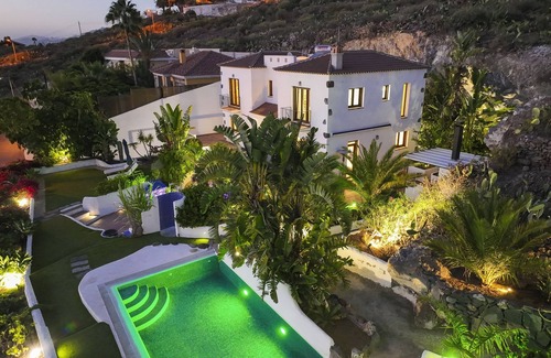 'Relax in this wonderful ocean-view villa in the warmest part of Tenerife. This villa is special not only for its interior space but also for the marvelous gardens and outdoor areas where you can enjoy Tenerife's fantastic climate throughout the year. Guests can unwind, enjoy privacy, and immerse themselves in nature. The villa is suitable for both couples and large groups (up to 8 people).'