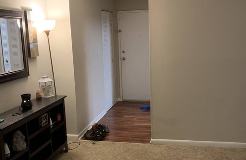 Welcome! Beautiful spacious two bedroom apartment located in town center. 2 min away from the mall, bars, and award winning Restuarants like cheese cake factory, Ruth Chris, pf chans ect. Apex has just been build! Apex is a Bowling alley, mini golf, arcade, bumper cart, bar, food, Axe throwing, go cart racing, escape room, laser tag, and so much more in one building!town center has everything you need!Oceanfront 6 miles away. Apartment is 1250 sq ft with great closet space. Each bed has drawers that you can pull out to use. Washer and dryer, need for speed WiFi Verizon Fios, 86” tv in living room to watch Hulu, Netflix, Disney plus or live TV. Kid room has full bed has a flatscreen smart tv, master bed has projector with fire stick 1.5 bathroom, dining room, full bath in hallway animals are welcome as well for a extra fee thank you!