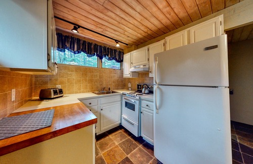 Perfectly placed within walking distance of North Conway Village and Cranmore Mountain Resort, this newly renovated, four-bedroom home will place the best of New Hampshire at your fingertips in each and every season. Whether you're a skier, a leaf-peeper, or two families vacationing together, you'll feel right at home here, thanks to two living areas, two full kitchens, and a wood-burning fireplace to toast your toes after a day spent exploring. In the summer months, you can light the gas grill for summer barbecues on the spacious deck; come winter, you'll have a flatscreen cable TV to watch as your wool socks and ski gear spin in the private washer/dryer. At night, you'll find two bedrooms and a full bathroom on each of the two levels - two queen bedrooms upstairs and a queen bedroom and another room with a set of bunk beds downstairs.
