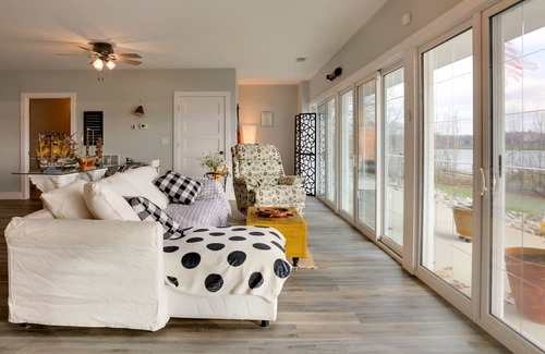 Book this waterfront vacation rental and prepare for an exciting trip on the Turtle Creek Bay frontage! This 2-bedroom, 1-bath home boasts a spacious living area, wall-to-wall windows with breathtaking views of the river, and a private dock — perfect for fishing! Explore attractions near Florence like the Belterra Casino Resort and the Creation Museum, both just a short drive away. After a day of adventure, unwind in the inviting outdoor area, where tranquility and relaxation await!