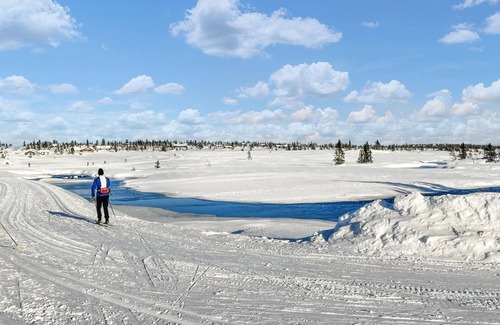 In winter, Sjusjøen is a cross-country skiing paradise with a wide selection of varied trails for the whole family. It is also possible to try alpine skiing at Sjusjøen ski center Natrudstilen or snowkiting or dog sledding on Kroksjøen.