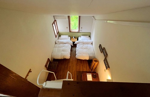 Welcome to Windy Hill Lodge near Lake Yamanaka and Mount Fuji Enjoy cherry blossoms summer activities autumn foliage and nearby hot springs Woodscented rooms serene forest setting and a spacious hilltop house Fully renovated in April 2023 we offer karaoke meeting rooms dining and more Ideal for families groups seminars and events Spacious BBQ area free parking and fullbuilding rentals available / The room has a maximum occupancy of 4 people and is equipped with 4 single beds 100 cm x 195 cm two of which are placed in a loft area