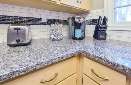Tiled and coretec floors, stainless steel kitchen appliances and granite countertops. Enjoy complimentary Coureg TM on the patio of this Bird's nest. Wireless connection, fresh linens, fresh towels, shampoo/conditioner, hair dryer, iron/ironing board, washer/dryer, fully functioning and stacked kitchen and liquid soap always available and provided.
